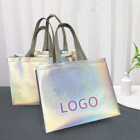 Голографическая упаковка большой емкости, лазерная ламинированная Нетканая полипропиленовая Нетканая сумка для покупок с логотипом на заказ