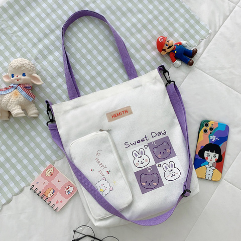 Neues Produkt: Handtasche, Nachhilfe tasche für Studenten, Canvas-Tasche mit großer Kapazität, Umhängetasche, Cartoon-Aufbewahrung tasche Nette Bücher tasche